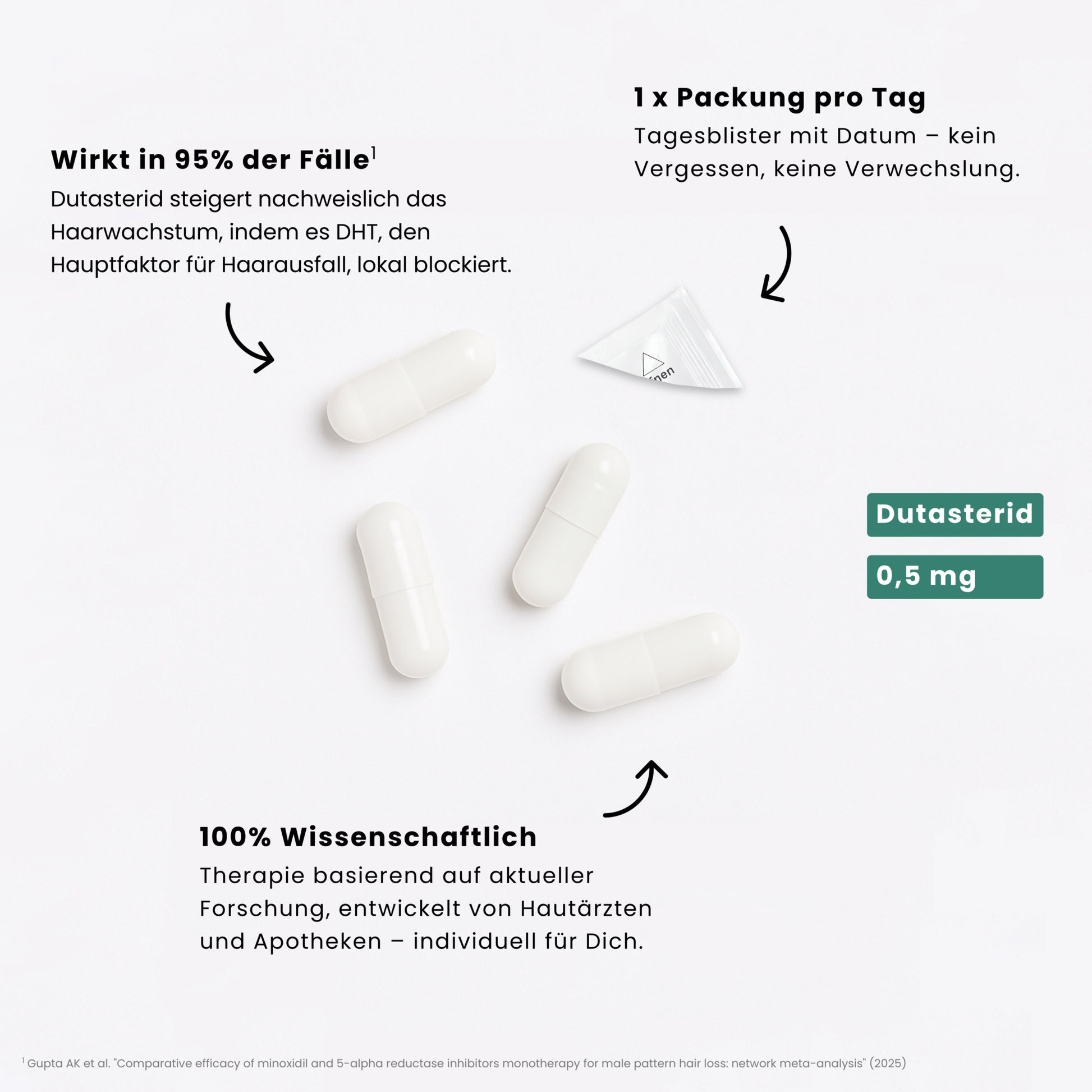 Kurzverlauf: Umstieg von Finasterid auf Dutasterid, in Monat 5 deutliche Verdichtung, Haarverlust gestoppt.
